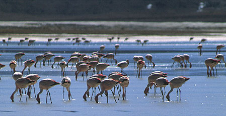 The journey starts with a brief visit to Toconao where the main square and the historic church are the main attractions. Also visit a local family who lives off the sales of their handicrafts. Continue to the National Flamingo Reserve in the Atacama salt flat. There are three types of flamingo to be found here, which live off the microscopic lagoon life. The views of the Andes as the sun sets are truly amazing