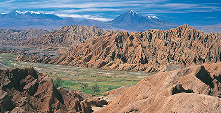 A fun excursion for the morning or afternoon. On arrival at the old road to Calama, the walk starts with a visit to some archeological sites and wonderful views of the volcanoes of the region. At a height of around 2 600m/8580 feet, descend via the huge dune to Death Valley – an unforgettable experience!