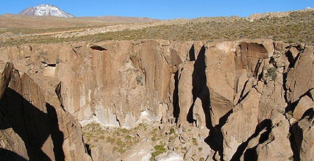 One of the most fabulous walks in the Atacama desert, perfect for acclimatizing to the altitude, the walk starts at a height of 3 600m/11 800 feet and continues to rise through terrain which displays the ecosystem that has evolved between these walls of igneous rock. Vizcachas, mountain cara cara, Andean Parakeets, condors, foxes and black hooded sierra finches, and other fauna and birds can be seen on the way.